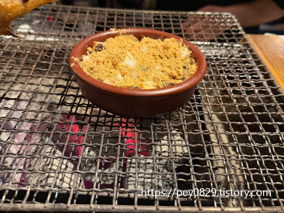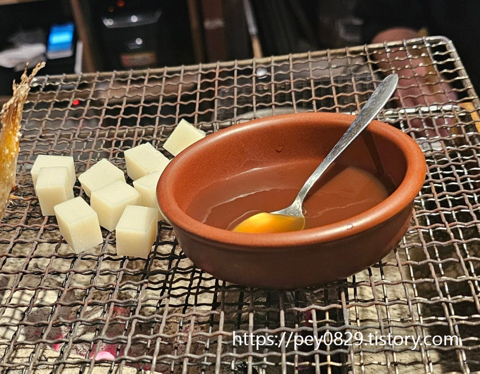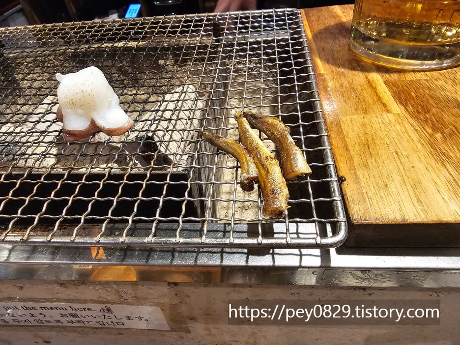 각 자리마다 화로가 놓여져 있습니다. 주문하면 앞에서 바로바로 구워주시니 감성 최고!!