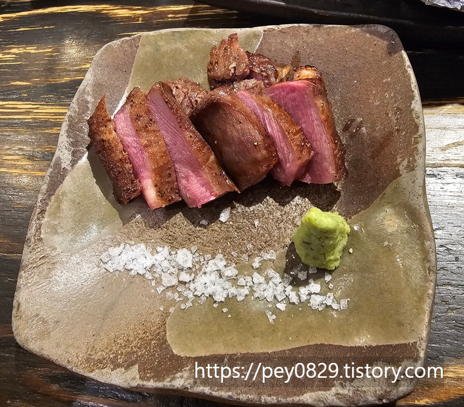 마지막으로 주문한 음식은 우설 스테이크(2090엔) 입니다.